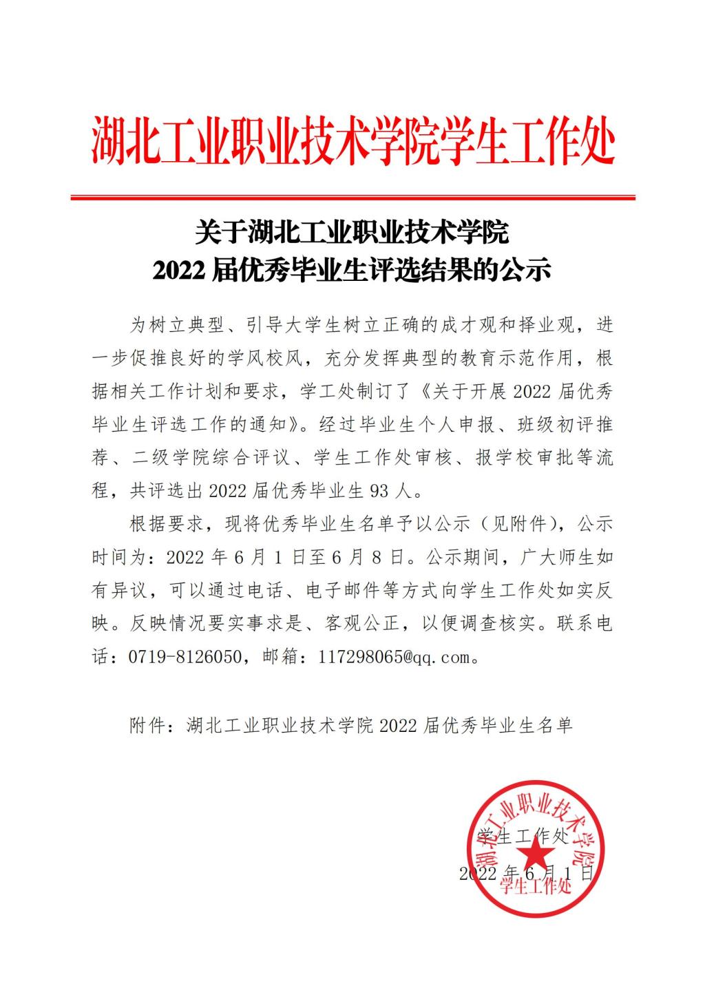 关于kubet(中国)官方网站2022届优秀毕业生评选结果的公示.pdf