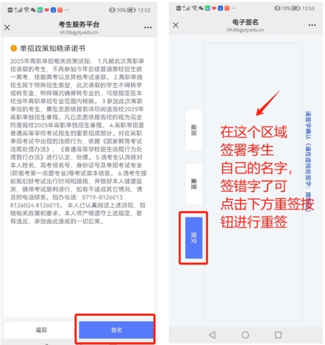 点击"生成准考证"后,阅读政策知晓承诺书,完成承诺书在线签名。