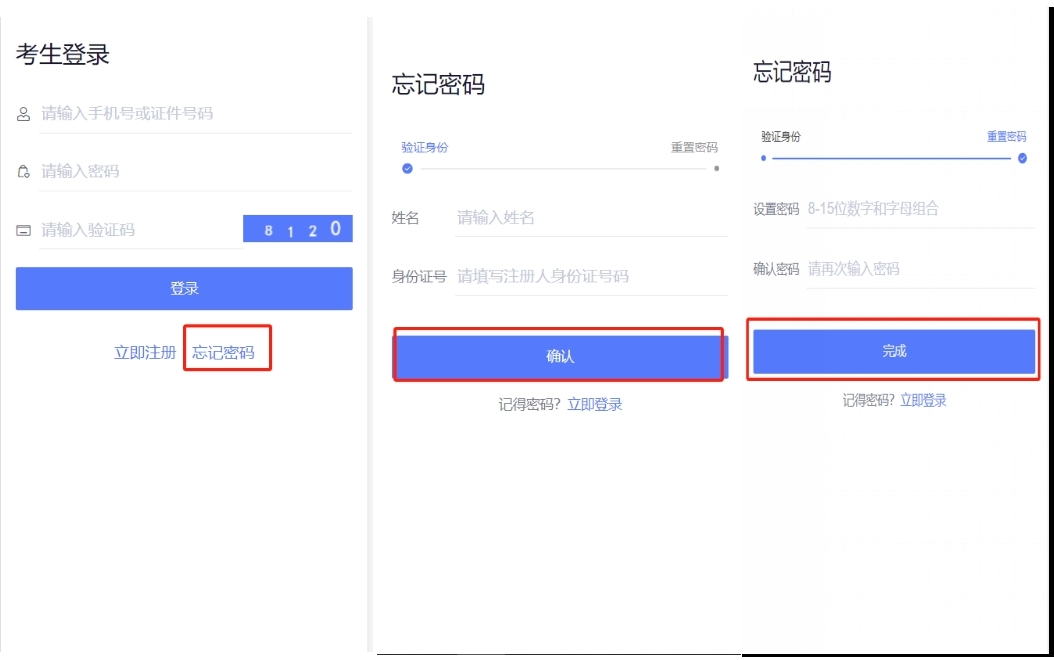 3.4忘记密码:用户注册完成后,如忘记了个人注册时设置的密码,可按如下步骤重置密码。